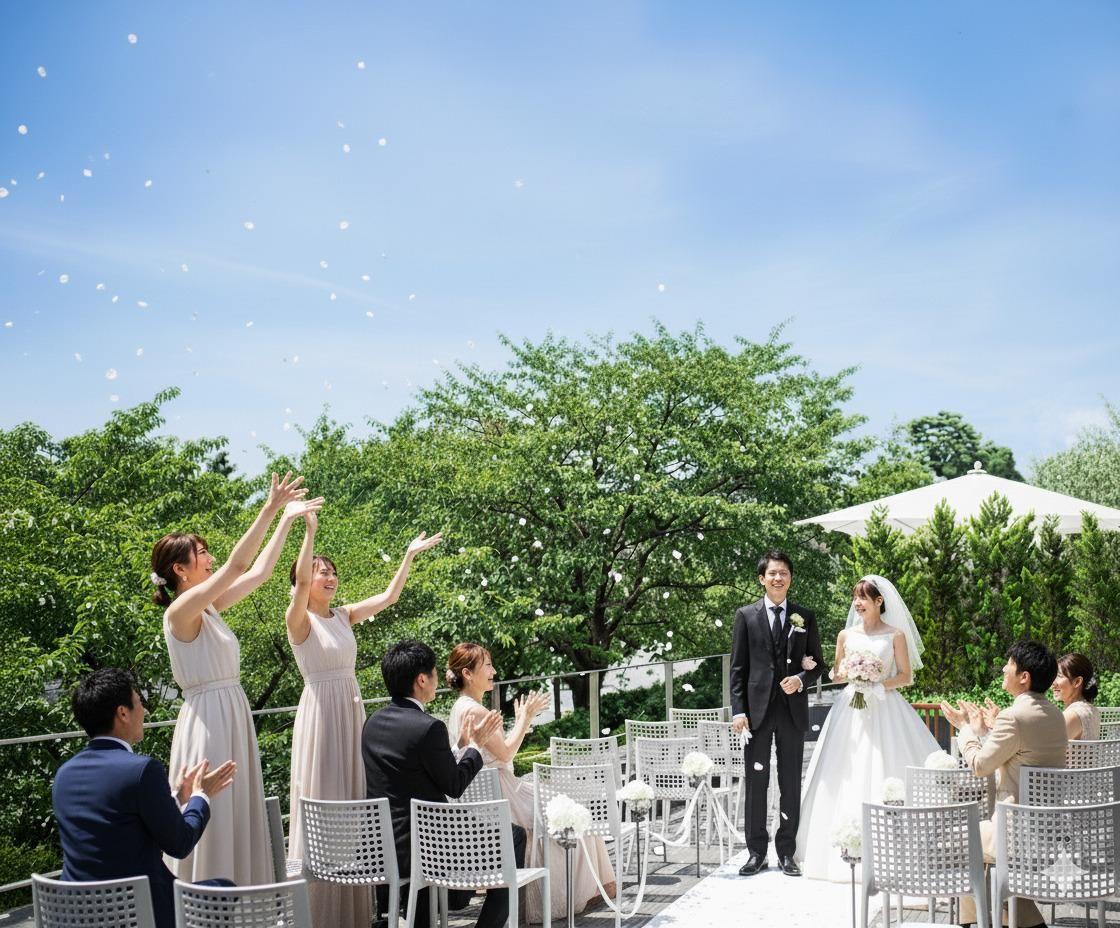 柔らかな光が降り注ぎ、緑が溢れるテラスは